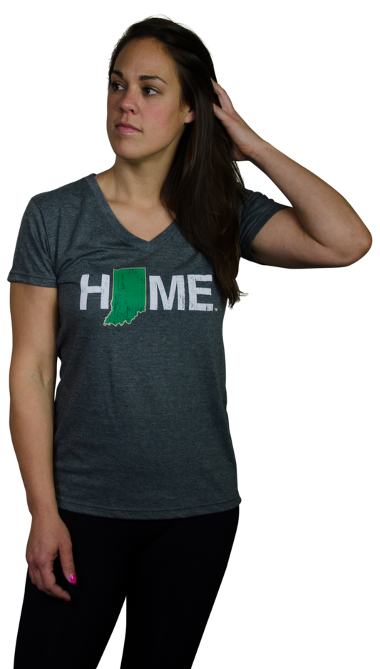 Ladies' Indiana HOME Green and Gold V-Neck Tee